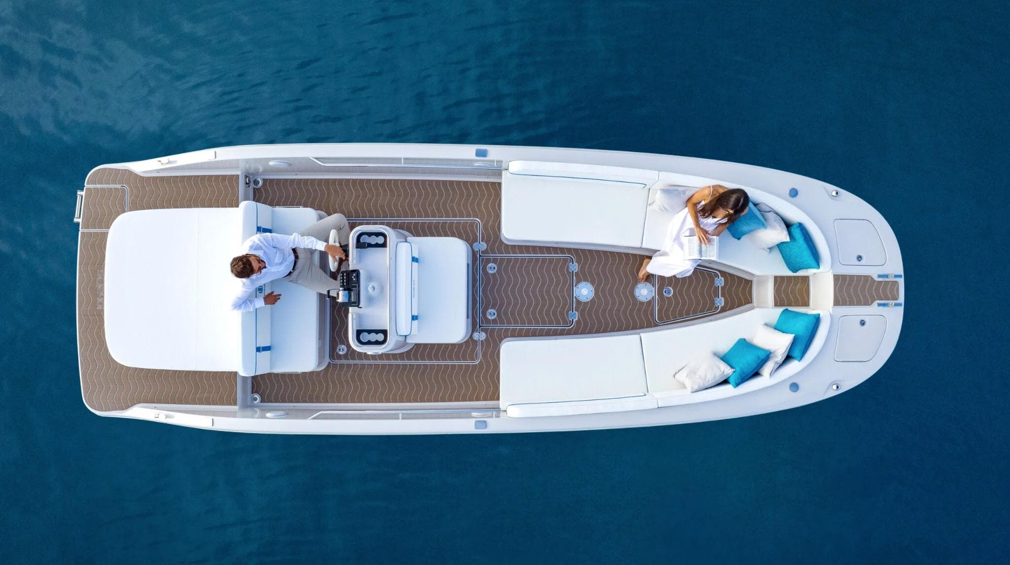 The profile is clean, essential; it seems drawn by a single brushstroke. The spaces on board, clear and enveloping, inspire relaxation. In silence, a new way of experiencing the boat becomes possible.